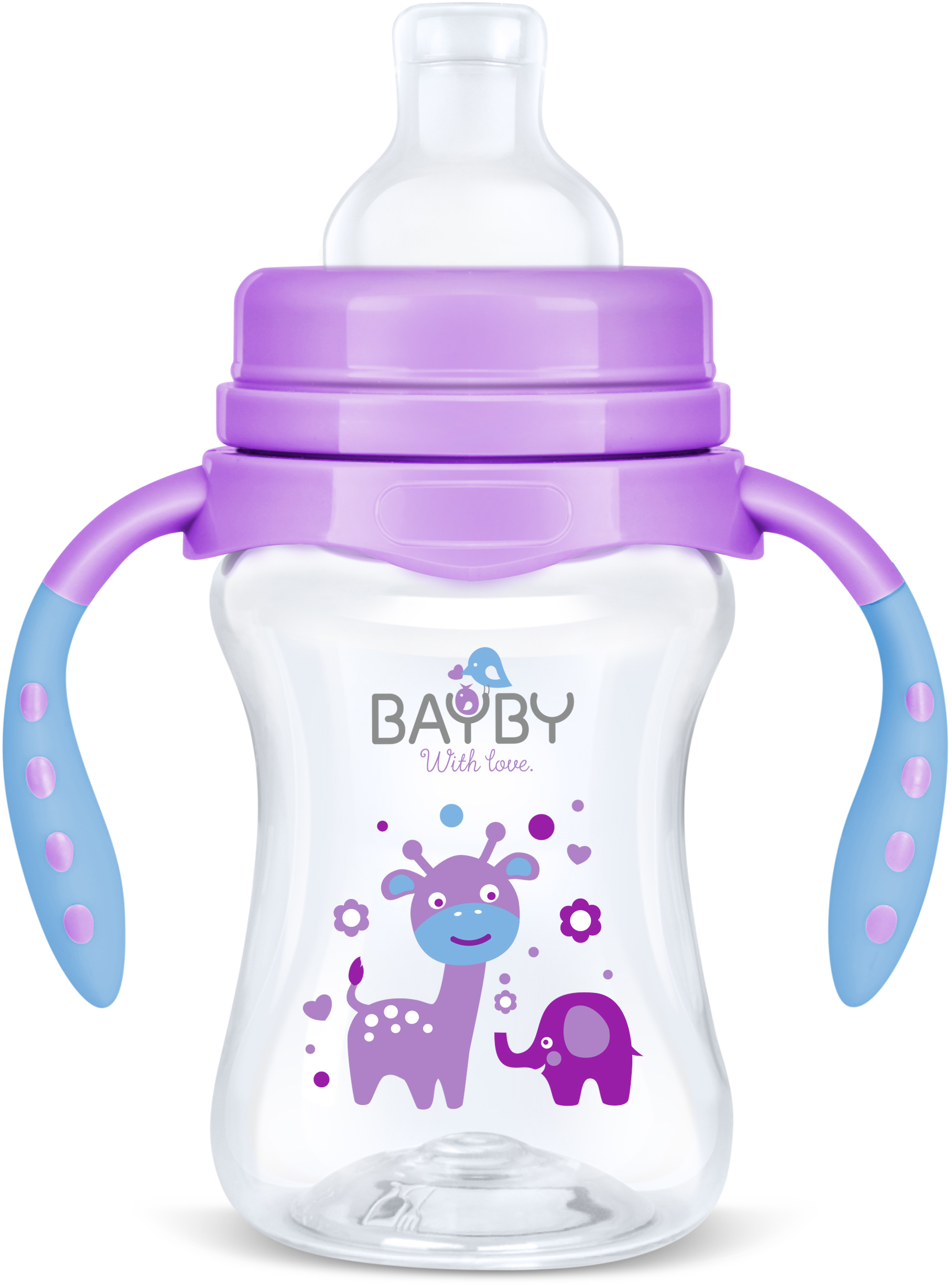 Nem folyó, 240 ml-es tanuló üveg fogantyúval, a szoptatás, valamint a cumisüvegből való etetés, és az önálló ivás közti átmenet tanulásához. Kényelmes és puha szilikon ivócsőr, ergonomikus fogantyú.